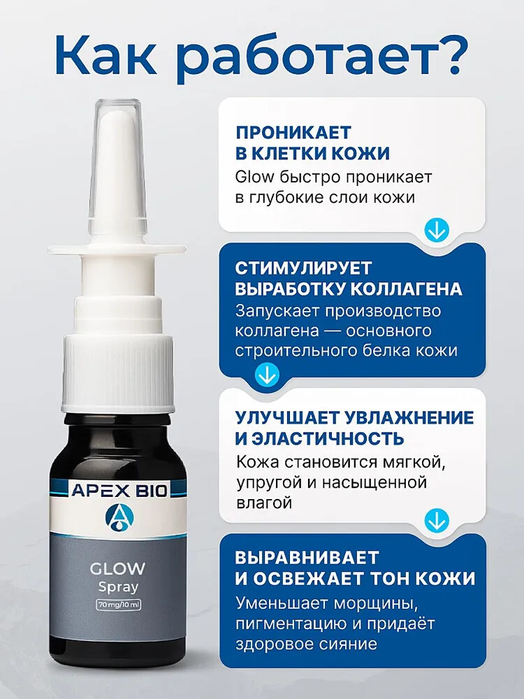 GLOW 70 мг (ghk-cu 50мг, tb-500 10мг, bpc-157 10мг) Спрей от Apex Bio купить в MAKSONA.RU