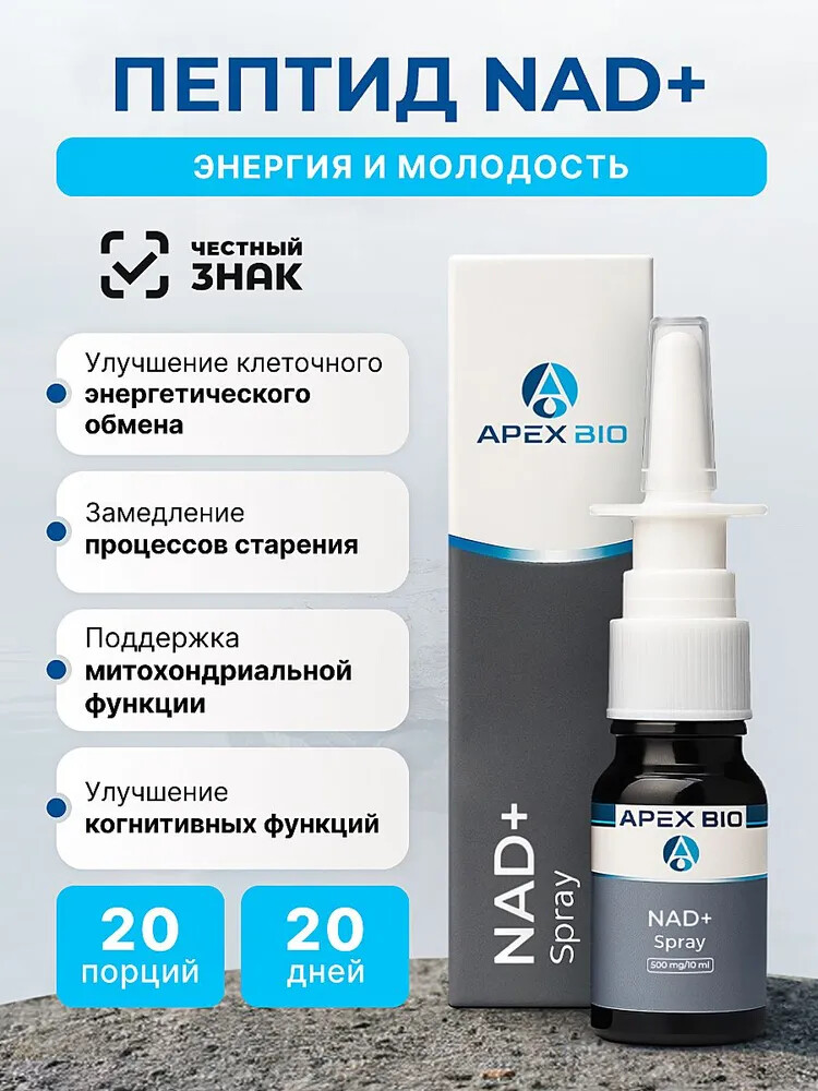 Устали от хронической усталости? Хотите замедлить старение на клеточном уровне? NAD+ 500 мг спрей от Apex Bio — это инновационная формула для прямого и эффективного повышения уровня главного кофермента молодости и энергии в вашем организме.